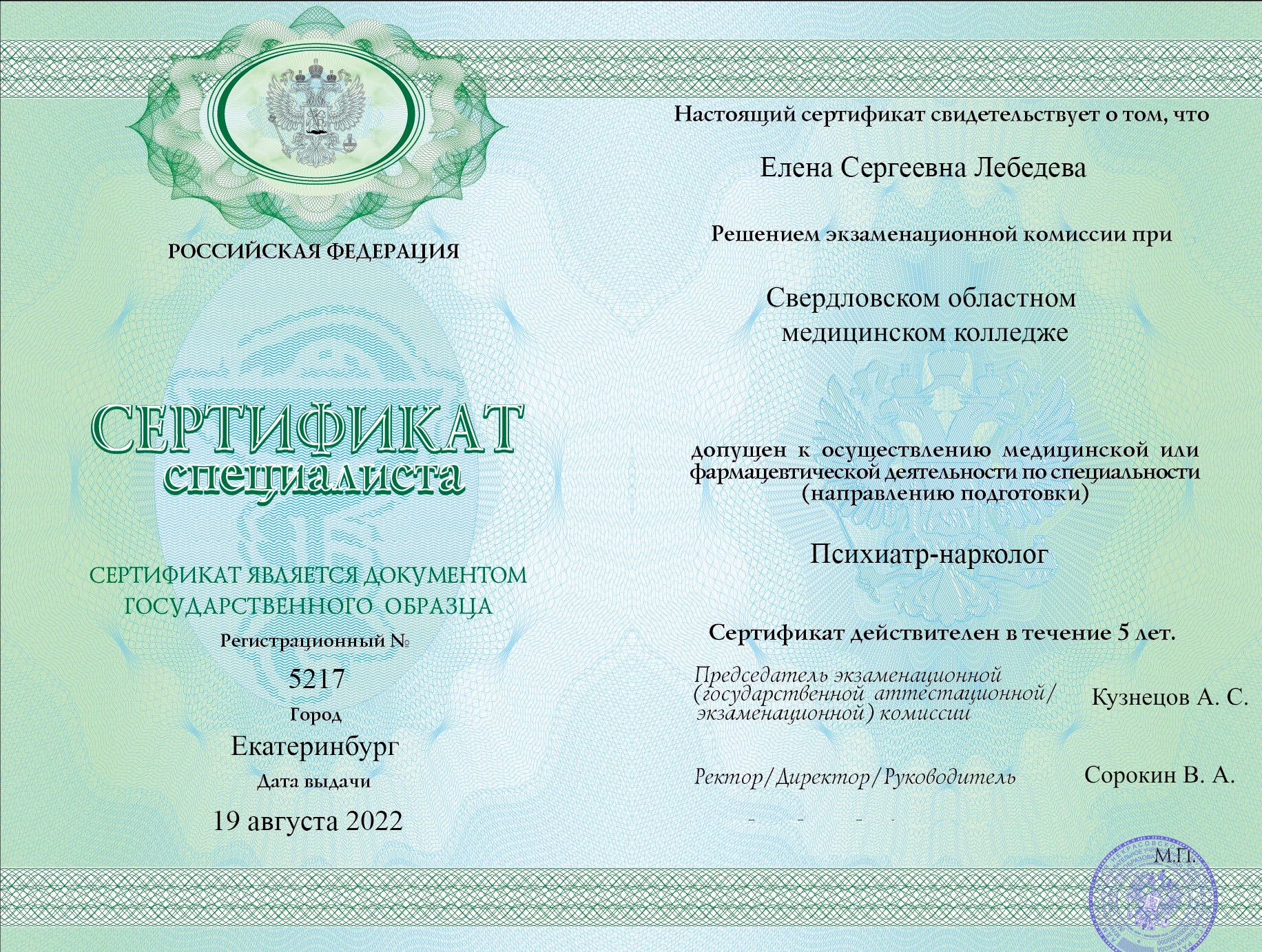 Елена Сергеевна Лебедева врач нарколог клиники доктора Стукаловой в Топках